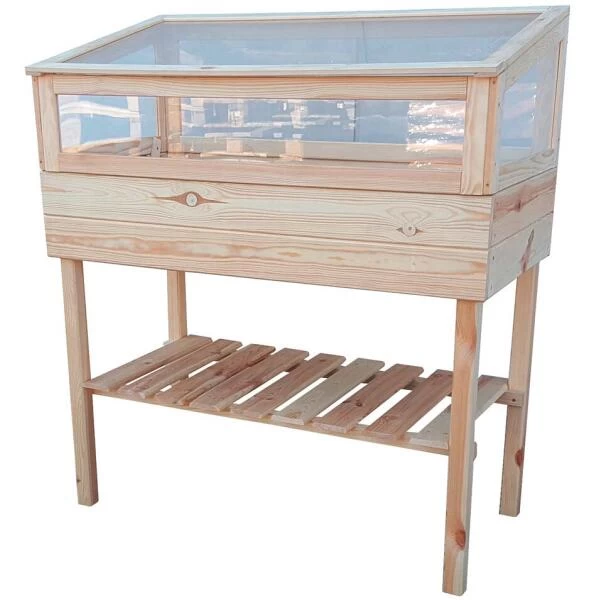 De bak is gemaakt uit massief onbehandeld hout zodat je zelf kan kiezen hoe je het hout verder afwerkt. De koude bak die wordt meegeleverd beschermt de gewassen tegen onguur weer. Door de isolerende werking ervan kan je ook vroeger starten met kweken en verleng je het teeltseizoen.