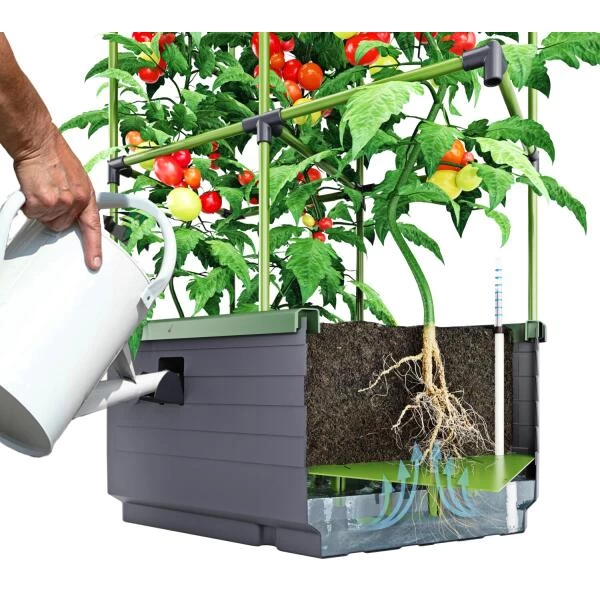 Handig om mee te werken! De City jungle is ideaal voor liefhebbers van tomaten en courgetten en geeft mensen die geen tuin hebben toch de mogelijkheid om deze gewassen te kweken. Dankzij het geïntegreerde irrigatiesysteem krijgen je planten altijd de gewenste hoeveelheid water. Het waterreservoir van 17 liter kan je makkelijk vullen met een gieter of tuinslang. De klimhulp is ideaal voor klimplanten zoals bijvoorbeeld tomaten. De planten hebben een houvast en kunnen zo optimaal groeien en bloeien.