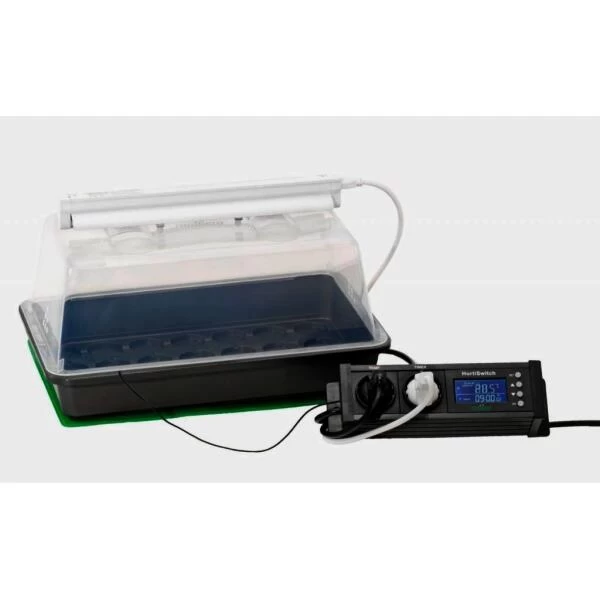 In de ventilatieschuifjes zijn gaatjes voorzien waarop je meegeleverde klemmetjes kan monteren. Op de klemmetjes klik je de bijgeleverde groeilamparmatuur met TL-verlichting 12 Watt. Op die manier heb je een handig kweekkasje met een goede groeiverlichting voor het bekomen van stevige zaailingen. De armatuur werkt op netstroom.