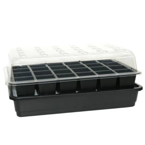 Zelf bevloeiende kweekset of zaaibak met 24 opkweekcellen. Een zeer goed functionerende kweekset geschikt voor gebruik op een vensterbank of in de serre, kas, veranda,… Ideale kweekbak voor een goede kieming van zaailingen of perfecte wortelvorming van stekken. Deze stevige zaaikas-kweekbak kan je meerdere jaren na elkaar gebruiken.